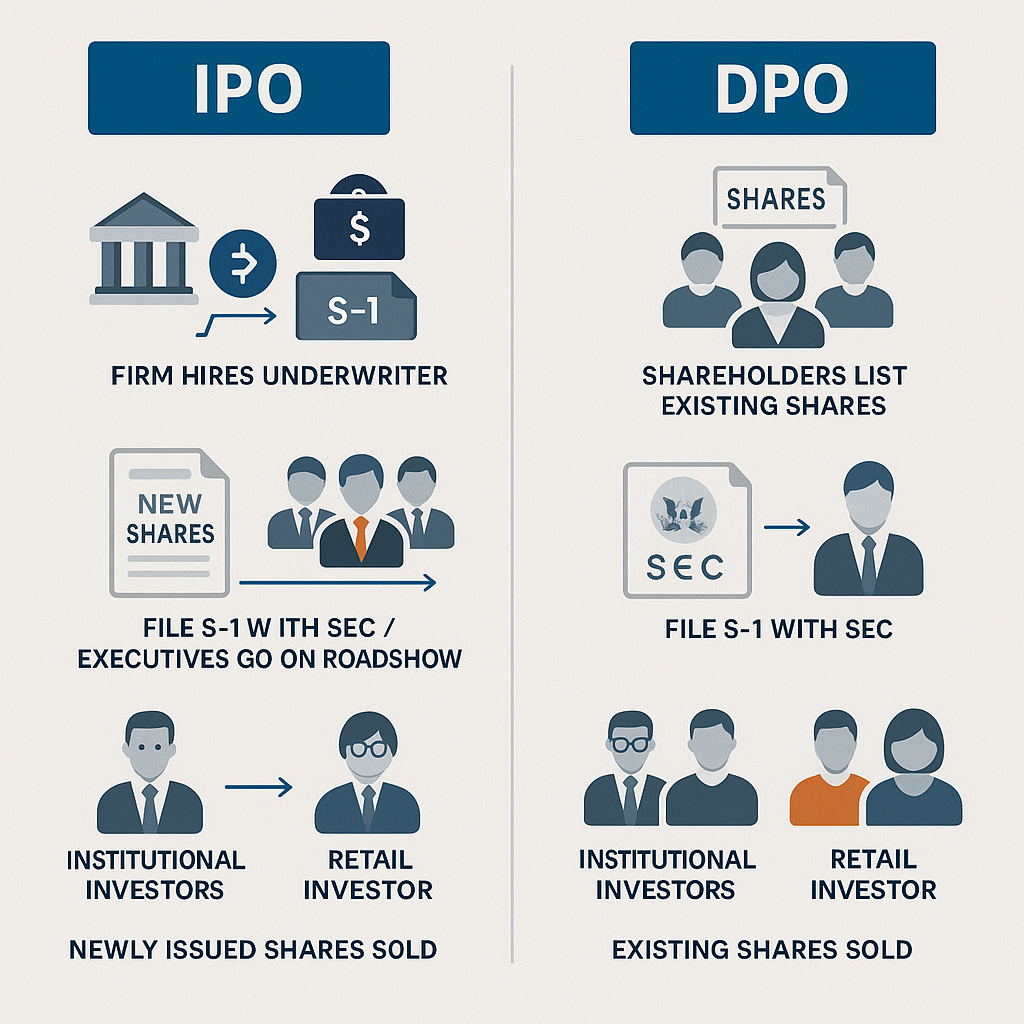 Roblox ended up not having an Initial Public Offering (IPO) but instead opted for a Direct Public Offering (DPO). In a traditional IPO, a firm hires a bulge bracket investment bank as an underwriter, they file an S-1 with the SEC, executives go on a roadshow to build demand with investors, the firm issues new shares for the underwriter to sell to the public, finally the underwriter sells the newly issued shares to institutional and retail investors on secondary markets.