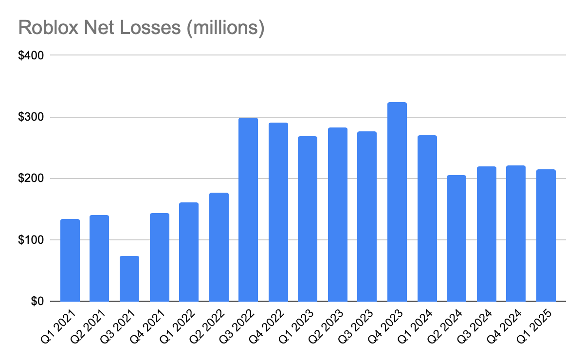 Roblox’s net losses didn’t scare institutional investors away for the same reason Tesla’s or Amazon’s didn’t in their early years, they were building long-term moats not harvesting short-term profits. Like Amazon investing in logistics or Tesla investing in battery scale, Roblox is building a creator economy flywheel that compounds value over time. It’s a platform bet, not a product bet and the public markets gave Roblox a multiple in line with SaaS not traditional gaming publishers. In the platform framing, $900 million in quarterly revenue with $250 million in quarterly losses isn’t failure, it’s deferred margin in exchange for creator lock-in and user retention.