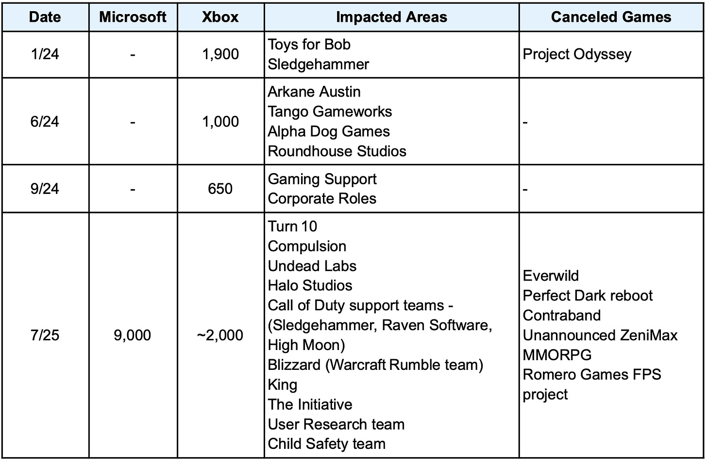 The Xbox layoffs weren’t about bad management or greedy shareholders, they were proof that player habits broke game funding. In early July we saw the all too familiar headline: Microsoft is laying off 9,000 employees. After years of forming and acquiring game studios, the crown jewel of which was the $69B acquisition of Activision-Blizzard-King, Xbox is having their 3rd major layoff in 18 months.